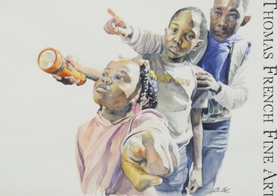 Darius Steward is establishing himself as a master of the medium of watercolor and large public murals. In 2018, Steward created two large public murals, “Breaker of Chains”, a 200’ by 6’ in height mural for the Midtown Cleveland/Cleveland State University and “Support” on Detroit Avenue in Cleveland. A new mural “Waiting Room” has been finished at SUMMA Health Care Tower, Akron, Ohio. Darius is currently working on a public sculpture commission for the Cleveland Public Library.
