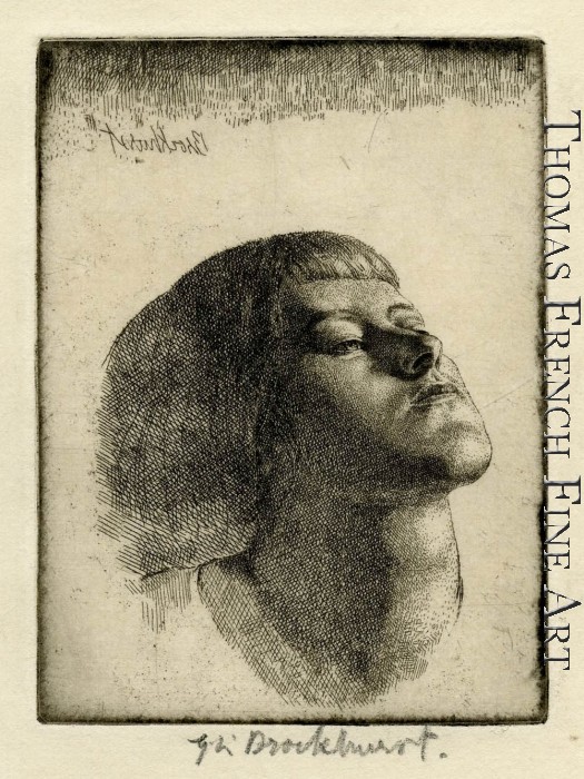 Brockhurst had taken up etching in 1920, making it his favorite medium until 1947, when he completely abandoned printmaking. He earned his living painting “society portraits,” and painted such notables as Marlene Dietrich and the Duchess of Windsor. He said he sought to record appearance, not character.